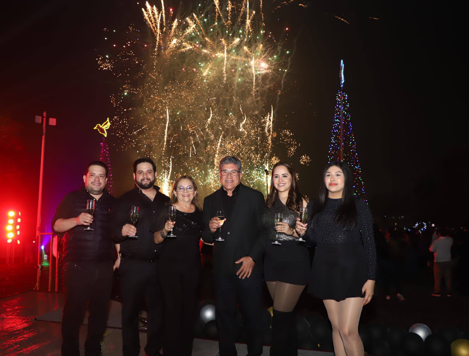 ALTAMIRA TAMAULIPAS.- Con un espectáculo que quedará en la memoria de los altamirenses, el municipio dio la bienvenida al 2025 en un evento encabezado por el alcalde, Dr. Armando Martínez Manríquez, acompañado de su esposa, la presidenta del DIF Altamira, C.P. Rossy Luque de Martínez, y familia. La celebración tuvo como escenario principal la Isla de la Esperanza, con el puente flotante iluminado y un impresionante show de fuegos artificiales musicalizados.