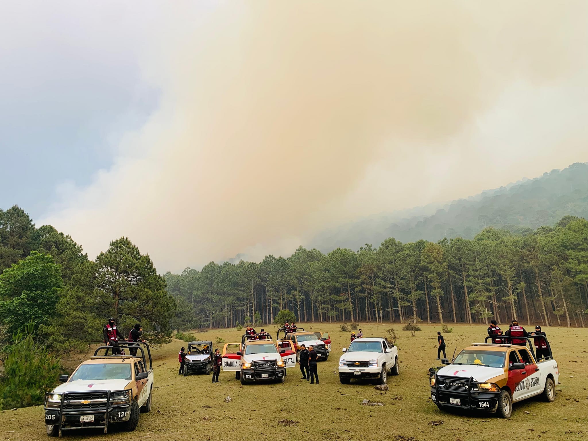 Las brigadas que combaten el incendio están integradas por personal de la SEDUMA, Secretaría de Desarrollo Rural, Comisión Nacional Forestal (CONAFOR), Protección Civil Estatal, Guardia Estatal, Guardia Nacional, Comisión Nacional de Áreas Naturales Protegidas (CONANP), elementos de la SEDENA y los propietarios de los predios afectados, por lo que el apoyo recibido con el abastecimiento de víveres ha sido de vital importancia.