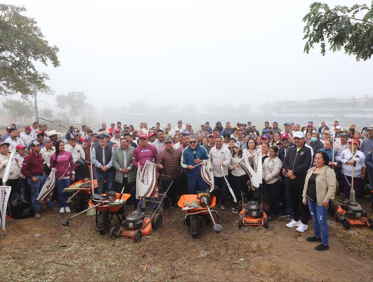 ALTAMIRA TAMAULIPAS.- Con la participación activa de dependencias municipales, organismos y ciudadanos, el presidente municipal de Altamira, Dr. Armando Martínez Manríquez, encabezó el arranque de la limpieza del Complejo Deportivo del Estadio Altamira, marcando el inicio de su rescate para convertirlo en un espacio digno para las familias y deportistas de la ciudad.