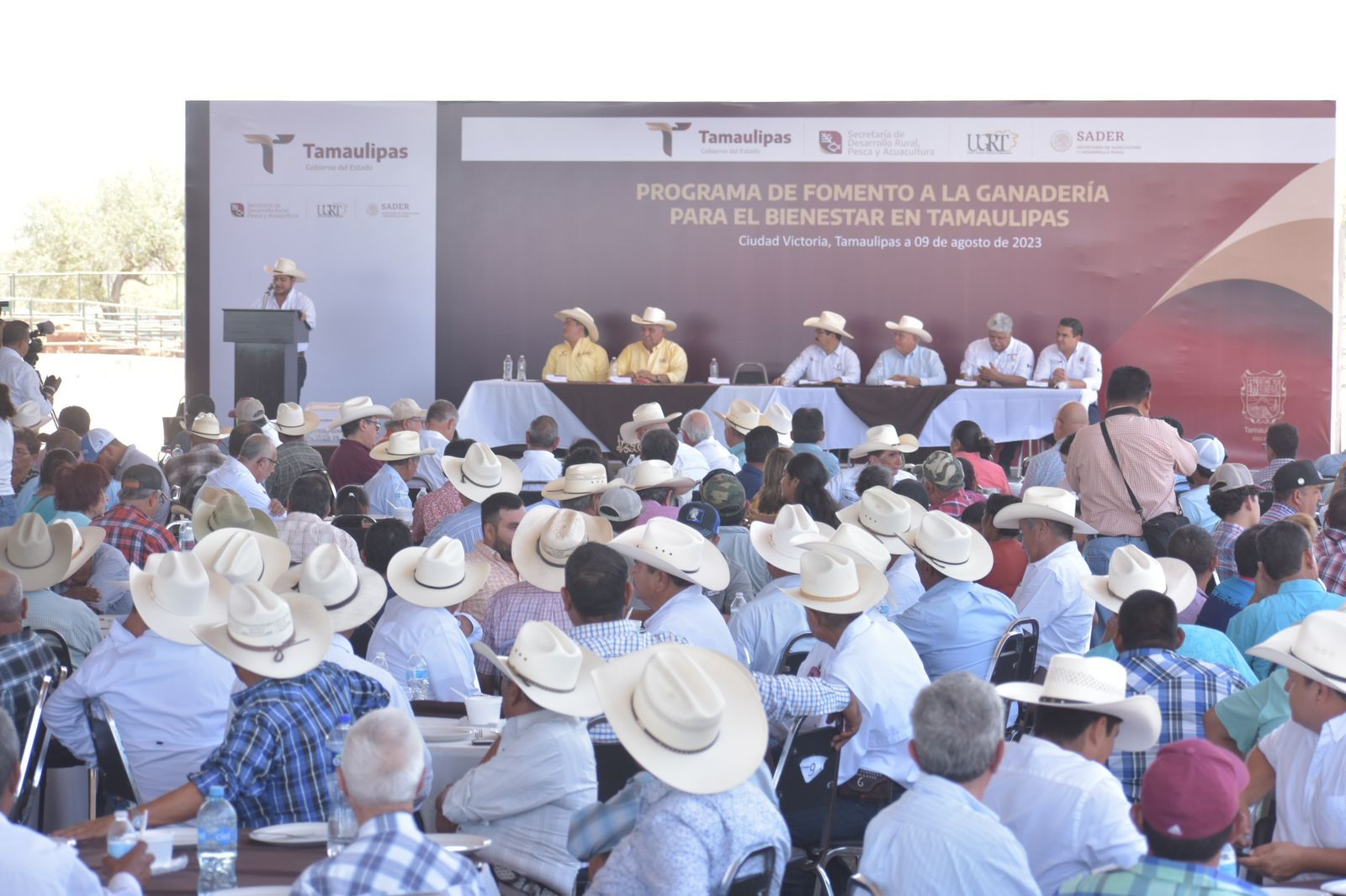 En el evento estuvieron presentes Guadalupe Acevedo González, representante de la Secretaría de Agricultura en Tamaulipas; Cuauhtémoc Amaya García, subsecretario de Desarrollo Pecuario y Forestal; Luis Enrique Salazar Sánchez, presidente municipal de Jiménez; Moisés Borjón Olvera, presidente municipal de Llera y productores pecuarios.