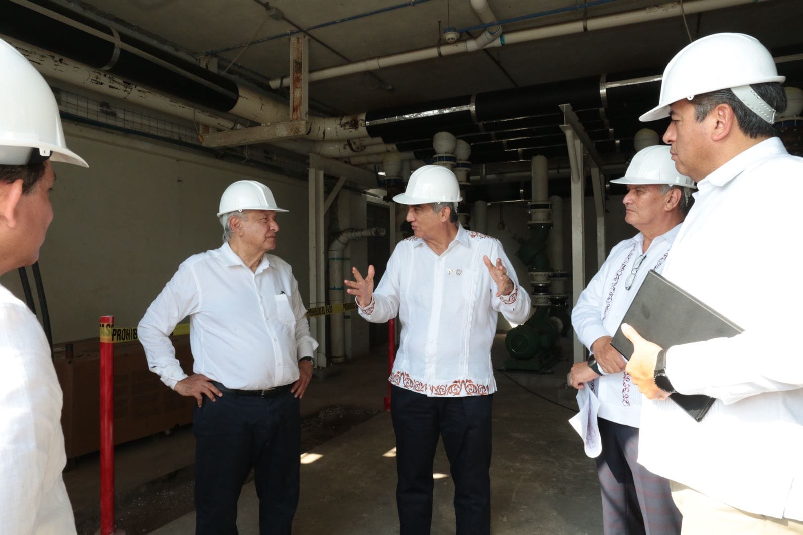 En una breve entrevista con los medios de comunicación López Obrador expresó su satisfacción por el avance en los trabajos.