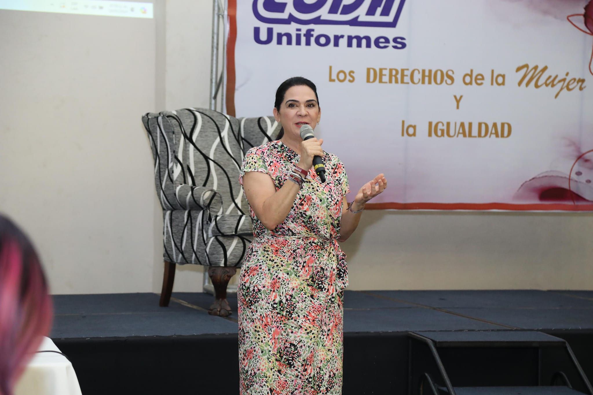 Tampico, Tam.- La candidata de la Coalición «Sigamos Haciendo Historia» a la alcaldía porteña, Mónica Villarreal Anaya, asistió como invitada a la conferencia denominada «Los Derechos Humanos de la Mujer y la Igualdad» organizada por Loda Uniformes.