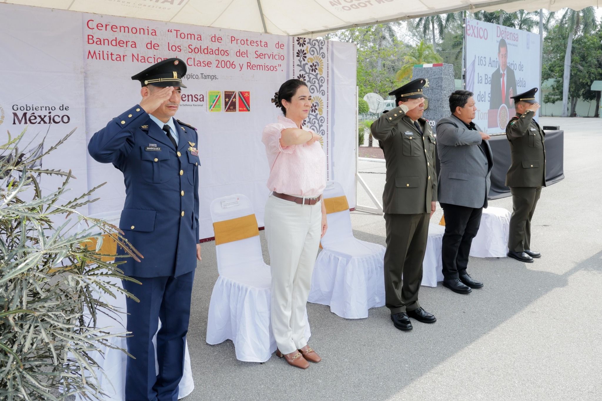 TAMPICO TAMAULIPAS.- La Presidenta municipal de Tampico, Mónica Villarreal Anaya asistió a la ceremonia de protesta de Bandera por parte de los conscriptos del Servicio Militar Nacional Clase 2006 y remisos en las instalaciones del Quinceavo Batallón de Infantería.