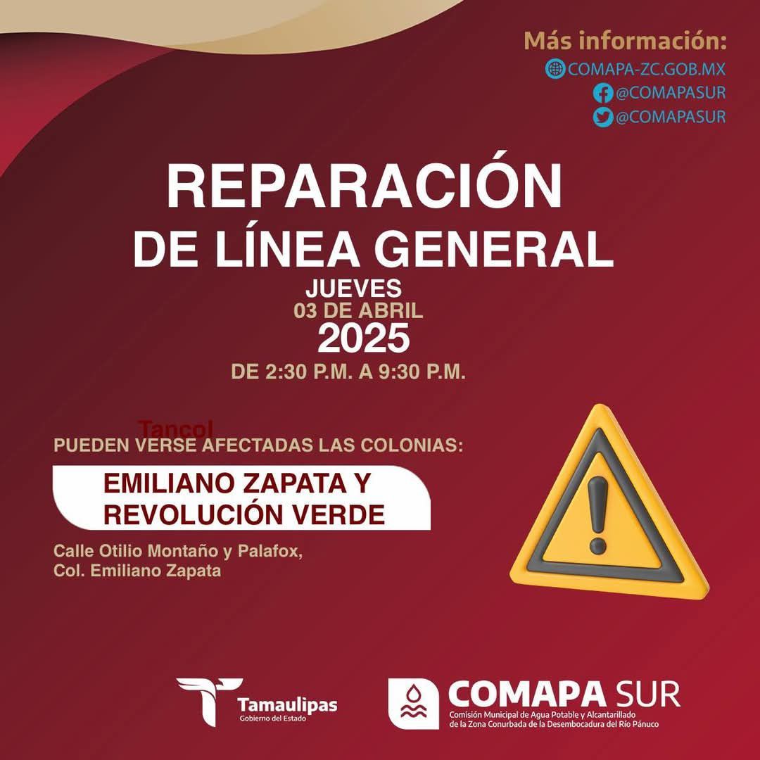 Pueden verse afectadas las colonias: Emiliano Zapata y Revolución Verde.