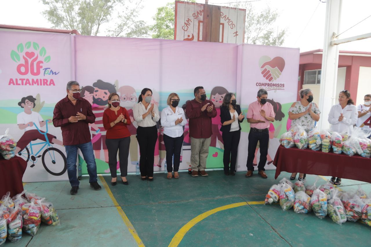 ALTAMIRA, TAM.- Un total de 144 niños y niñas que reciben instrucción especial en el Centro de Atención Múltiple “Samuel Ramos Magaña” de la colonia Jardines del Champayán fueron beneficiados con la entrega de paquetes alimentarios esenciales, mismos que fueron seleccionados de manera especial por nutriólogos del Sistema DIF municipal para garantizar un alto valor nutricional en sus beneficiarios.