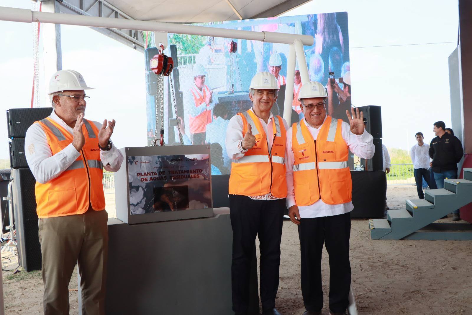 ALTAMIRA TAMAULIPAS.- Mediante una inversión de más de 500 millones de pesos y contando con la presencia del gobernador del Estado, Dr. Américo Villarreal Anaya, se colocó la primera piedra de la Planta de Tratamiento de Aguas Residuales, en el sector La Pedrera, con lo que se perfila Altamira como municipio sostenible y sustentable, generando además salud, bienestar, y justicia social.
