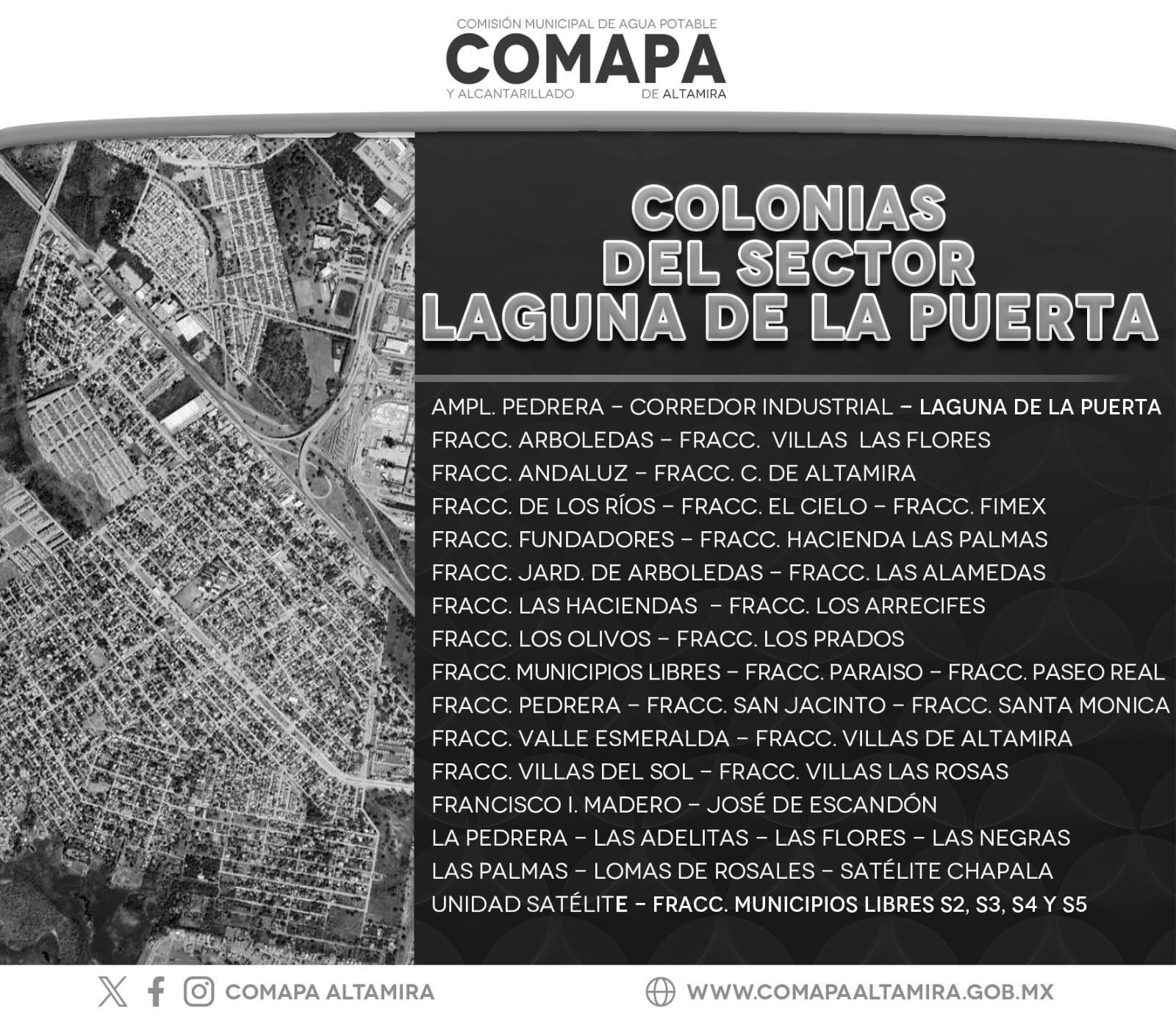 Ante la crítica situación del sistema lagunario, COMAPA Altamira suspenderá temporalmente el servicio como medida de uso racional y cuidado del agua en las colonias del sector Laguna de la Puerta, a partir de las 10:00 p.m. de este martes 14 de mayo, hasta las 10:00 p.m. del miércoles 15 de mayo.![]()