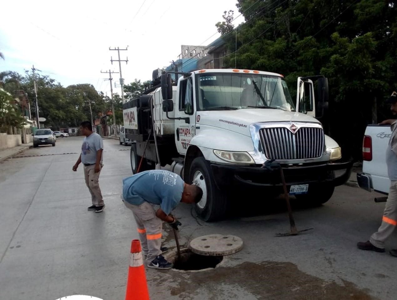 ALTAMIRA, TAM.- Brindando un servicio eficiente para garantizar el óptimo funcionamiento de la red de drenaje del municipio, personal de COMAPA Altamira efectuó la limpieza de los pozos de visita ubicados en las colonias Petrolera 2, Satélite, y Emilio Portes Gil.
