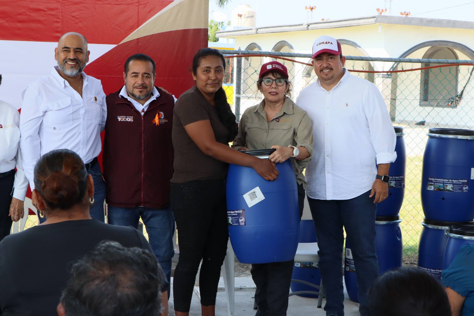 COMAPA ALTAMIRA.- En un esfuerzo conjunto, la Comisión Municipal de Agua Potable y Alcantarillado de Altamira y el Gobierno de Tamaulipas, a través del programa “Desinfección de Agua” PROAGUA, realizaron la entrega de dispositivos de filtración de agua a 67 familias de comunidades situadas en la margen del río Tamesí.