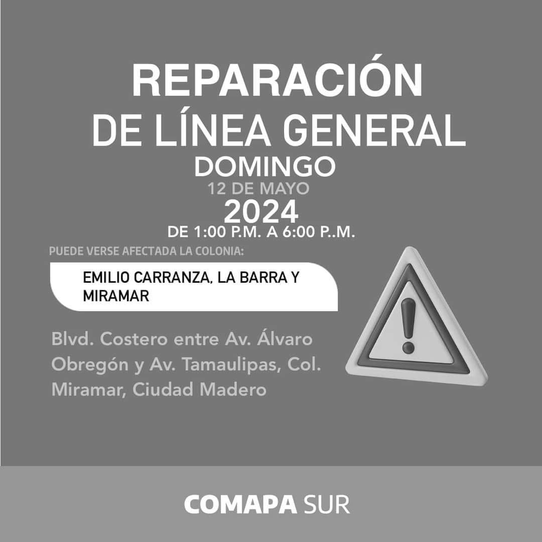 ➡Pueden verse afectadas las colonias: Emilio Carranza, La Barra y Miramar #CdMadero