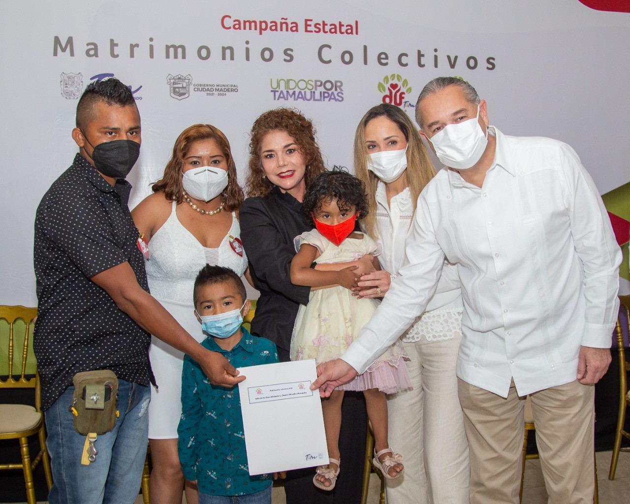 CD. MADERO, TAM.- Consolidar una sociedad fortalecida en valores es prioridad para el alcalde de Ciudad Madero, Adrián Oseguera Kernion, quien acompañado de su esposa, la presidenta del Sistema DIF Madero, Sra. Ana Cristina Organista de Oseguera, encabezaron la campaña estatal de Matrimonios Colectivos.