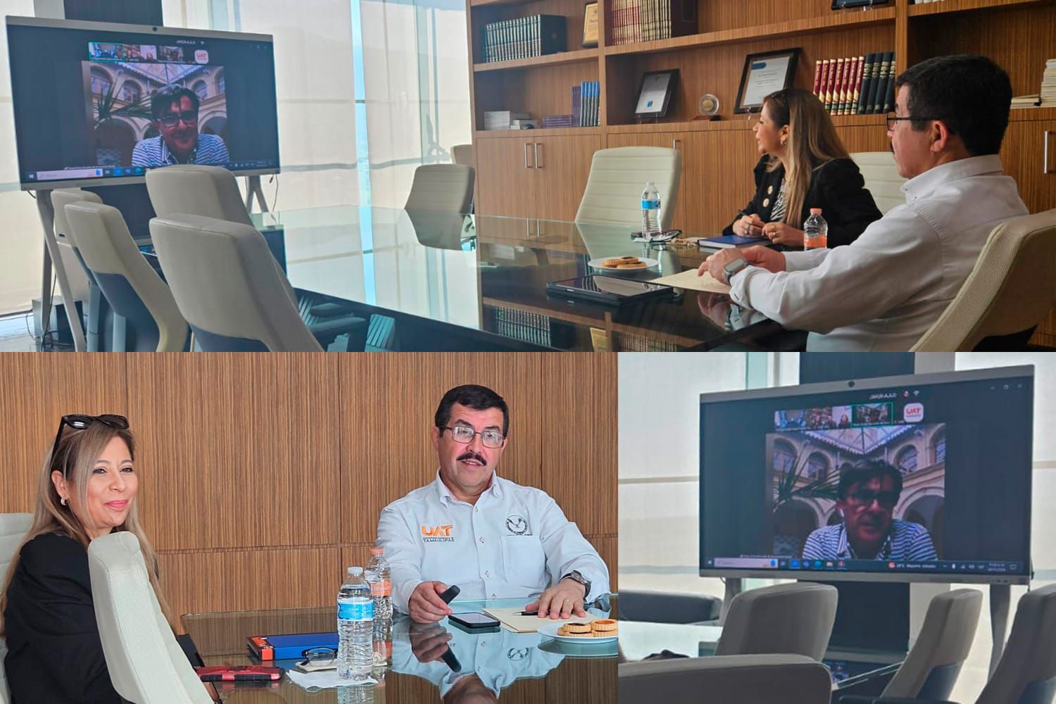 En un enlace por videoconferencia, el rector de la UAT, Dámaso Anaya Alvarado, y el director de la Escuela de Economía Social de Osuna, Dr. José Ariza Reyes, acordaron establecer una ruta conjunta para fortalecer esta colaboración que resalta el compromiso institucional en la formación de emprendedores sociales en México, beneficiando a la comunidad universitaria y generando un impacto directo en las comunidades de Tamaulipas.