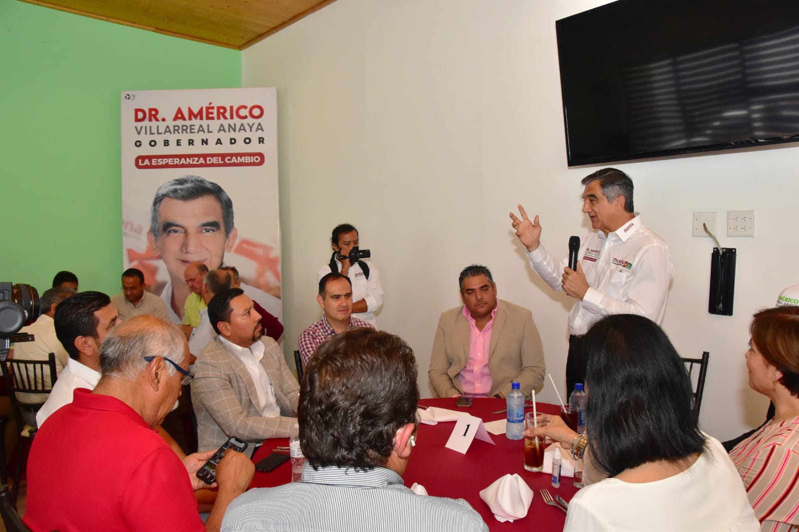 Nuevo Laredo, Tam.– Américo Villarreal Anaya, candidato de «Juntos Hacemos Historia» que conforman Morena-PT y Verde Ecologista convocó a ingenieros y constructores de esta frontera a sumarse al crecimiento y construcción de un nuevo Tamaulipas.