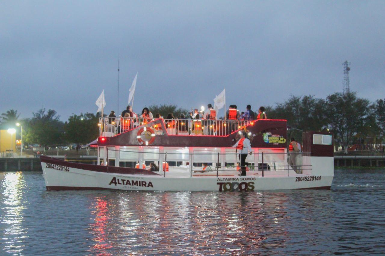 ALTAMIRA, TAM.- Por primera vez, la Laguna del Champayán contará con una embarcación turística de primer nivel para brindar un extraordinario paseo en dicho vaso lacustre, así lo externó el presidente municipal de Altamira, Mtro. Armando Martínez Manríquez durante el corte de listón inaugural de este navío el pasado 16 de marzo. Indicó que el mismo viene a sumarse a los atractivos en materia de turismo con los que se cuenta en la urbe industrial.