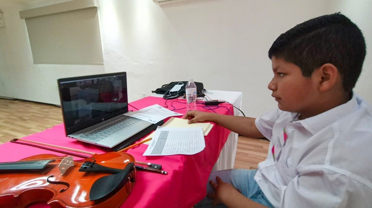 Sebastián, estudiante de 6to año de la primaria Vicente Guerrero, participó con el proyecto “Un grupo instrumental y Coral de la Primaria Vicente Guerrero”.