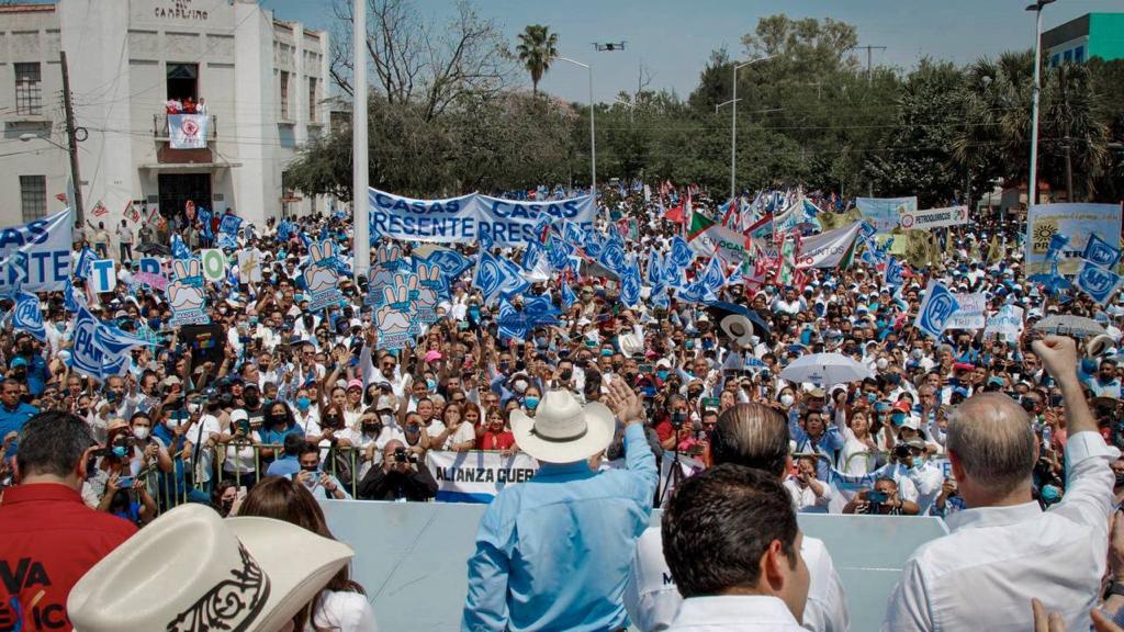 CD. VICTORIA, TAM. – PAN, PRI y PRD darán juntos una gran batalla para defender a Tamaulipas y a México en la elección del 5 de junio, afirmó Marko Cortés Mendoza, al dirigirse a los miles de asistentes que acompañaron a César Verástegui Ostos en su registro para contender por la gubernatura del estado.