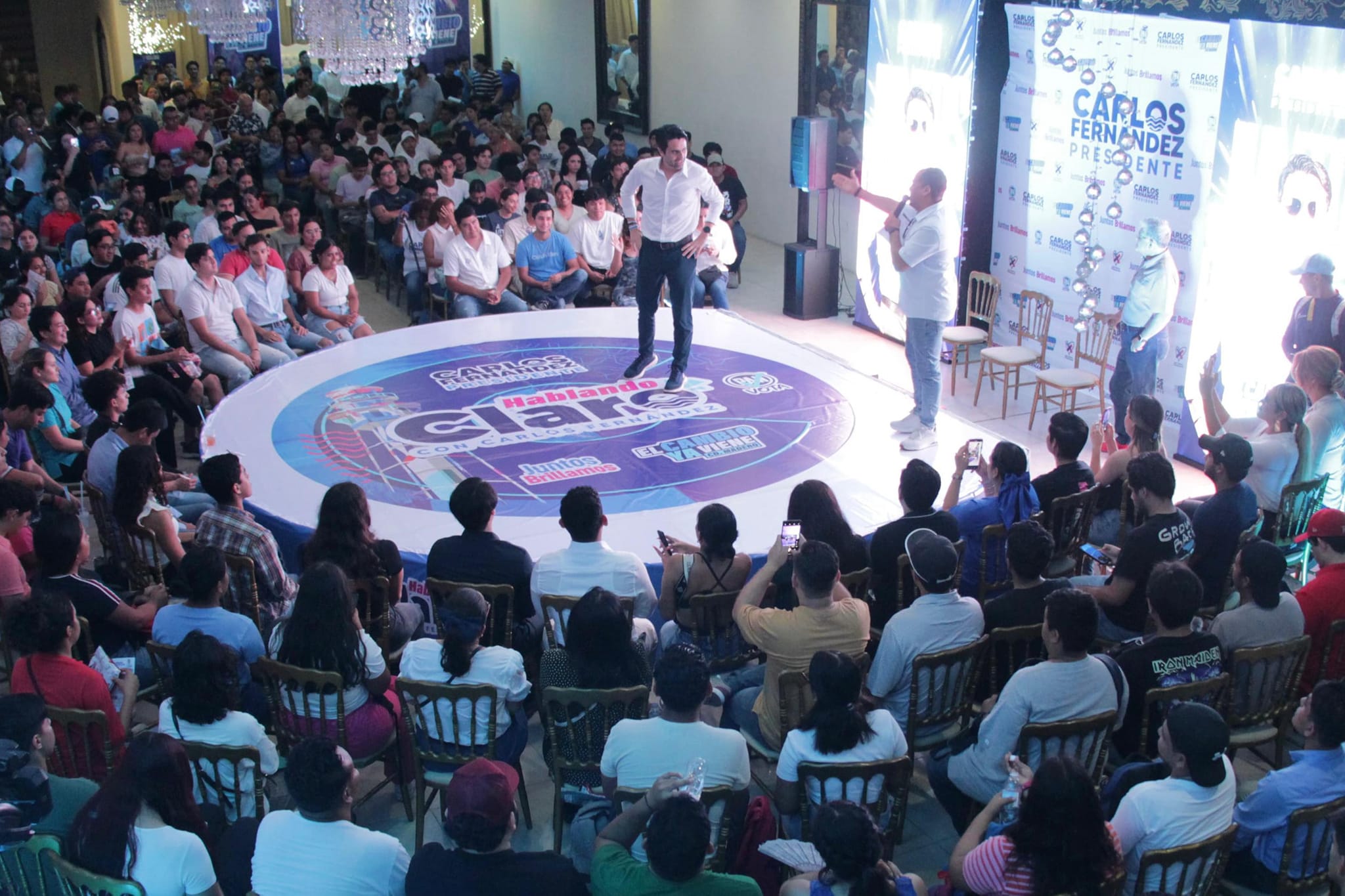 CD. MADERO TAM.- Carlos Fernández Altamirano, candidato a Presidente Municipal de Ciudad Madero por la alianza “Fuerza y Corazón por Tamaulipas”, encabezó el encuentro “Hablemos Claro” con cientos de jóvenes, en el que escuchó propuestas de políticas públicas para nutrir su proyecto.