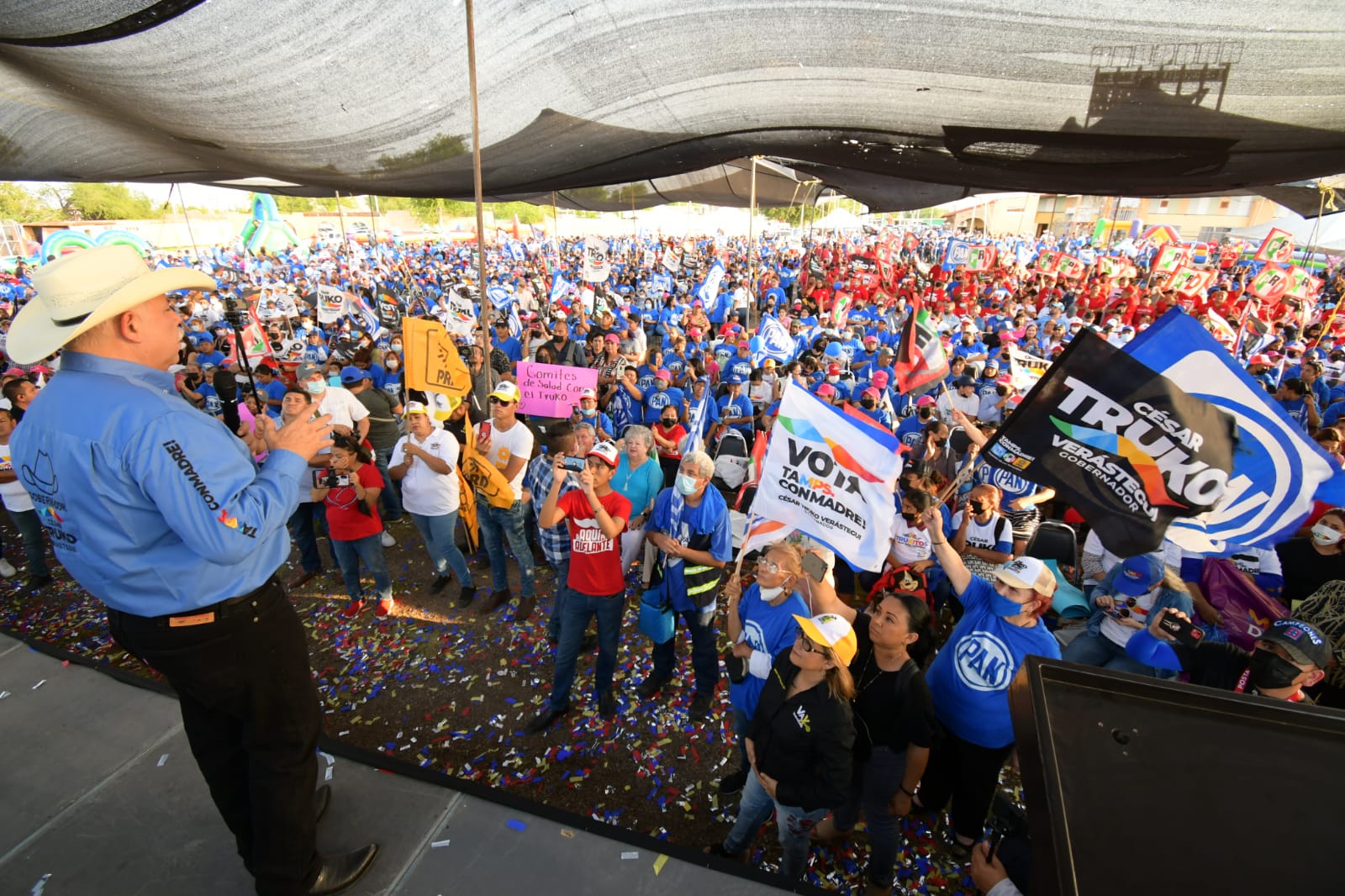 REYNOSA, TAM. – Miles de simpatizantes de la coalición “Va por Tamaulipas” acudieron a un encuentro con su candidato César el Truko Verastegui, dejando en claro que este 5 de junio lo llevarán al triunfo electoral