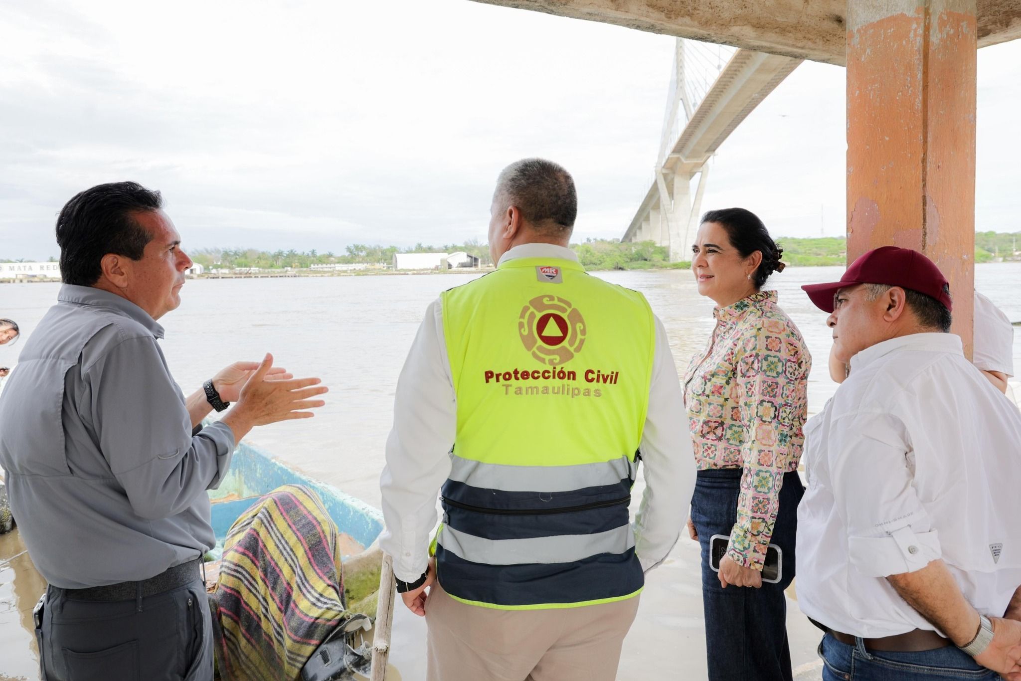 La alcaldesa porteña, acompañada por los titulares de las áreas de Protección Civil, José Antonio Marín Flores y Servicios Públicos, Ricardo Mora Alvarado, así como por representantes de la Guardia Nacional, Sedena, Bomberos, Protección Civil regional y Tránsito y Vialidad, sostuvo que su administración se mantiene alerta de las condiciones meteorológicas y del escurrimiento de las corrientes río arriba que puedan generar afectaciones en sectores colindantes a los ríos Pánuco y Tamesí.