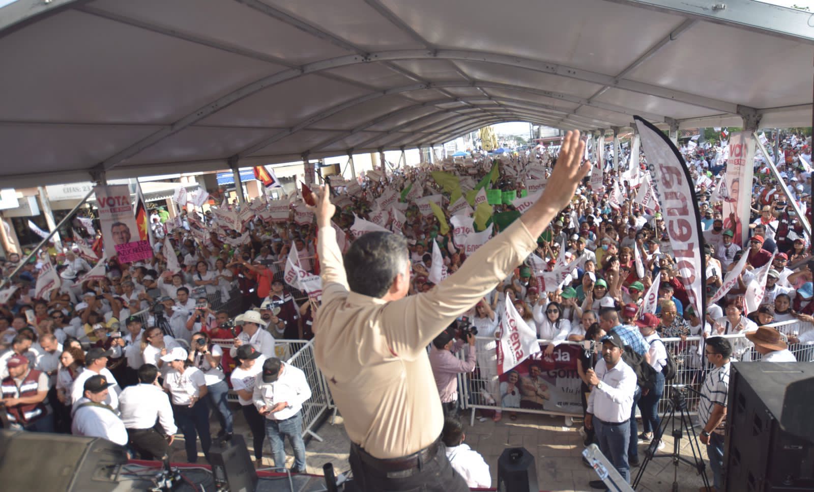 “Traigo el encanto, el júbilo y la emoción de todos los municipios”, dijo el doctor Américo Villarreal quien les recordó a los asistentes que el 5 de junio tenemos un gran compromiso con la historia porque es la oportunidad de ser la generación que fue valiente y se presentó a participar en paz y en libertad a votar masivamente.