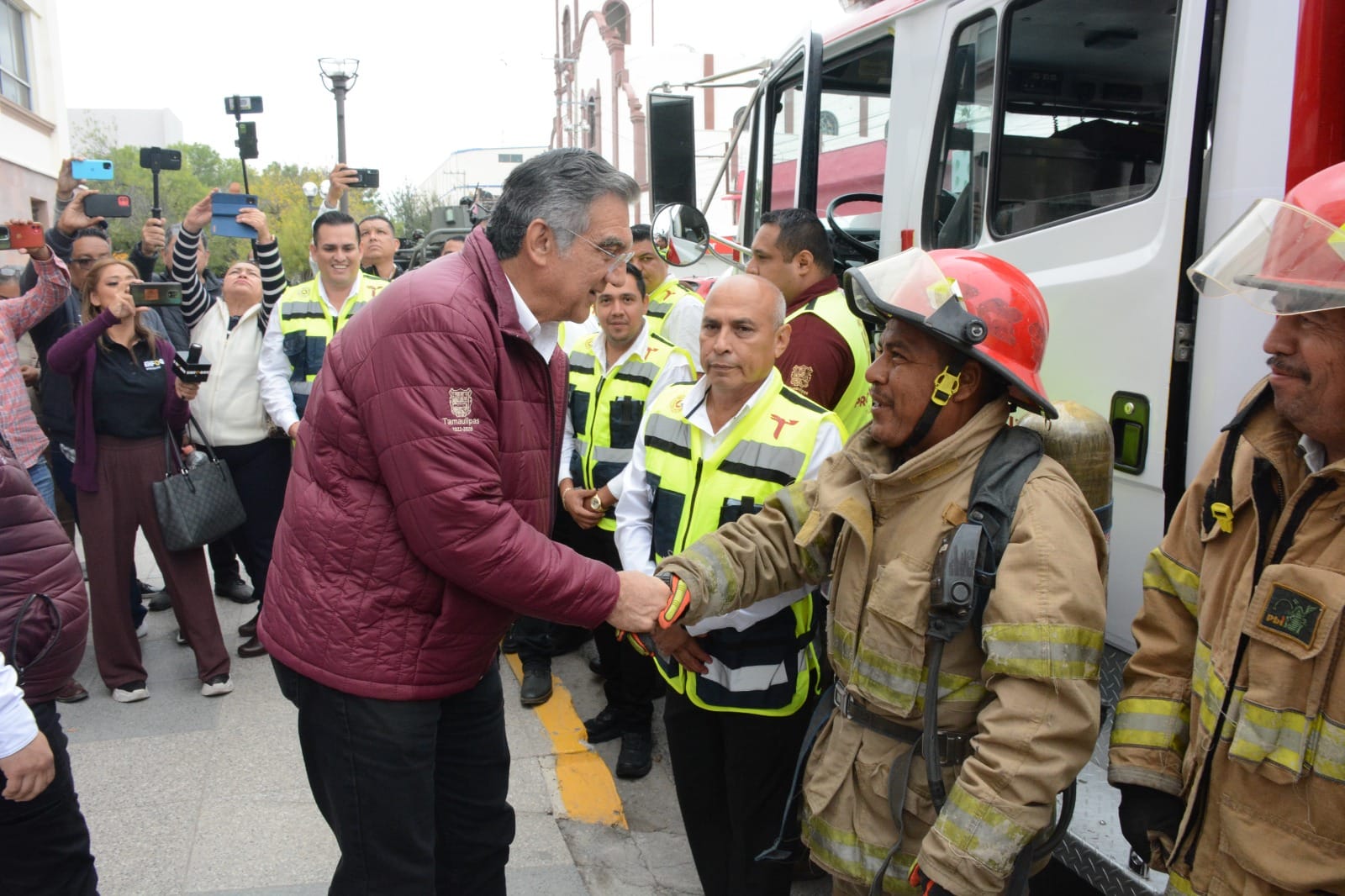 CD VICTORIA TAM . – Para que las corporaciones de auxilio cuenten con equipo y unidades que permitan brindar ayuda a la población en situaciones de emergencia, el gobernador de Tamaulipas, Américo Villarreal Anaya hizo entrega de un camión contra incendios a la Coordinación Estatal de Protección Civil de Tamaulipas.