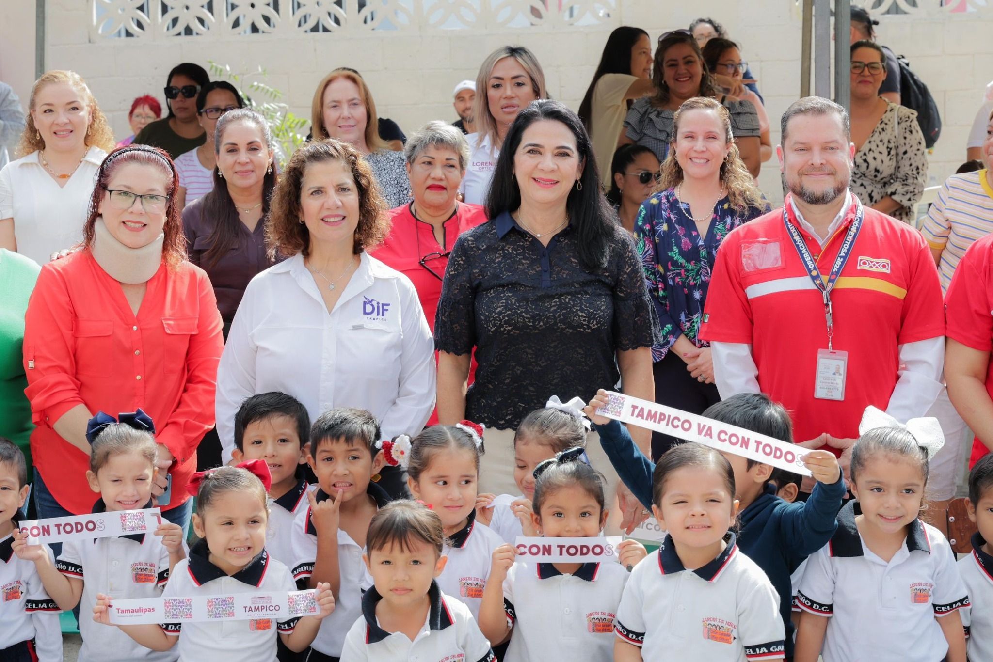 Al acto asistieron, la responsable de Recursos Humanos de la empresa, Erika Sánchez; la Directora del plantel beneficiado, Rita Martínez; la Directora del Sistema DIF Tampico, Mariana Altamirano Aceves; y el titular de Bienestar Social en el municipio, Omar Fabbri Flores; así como miembros del Cabildo y funcionarios municipales.