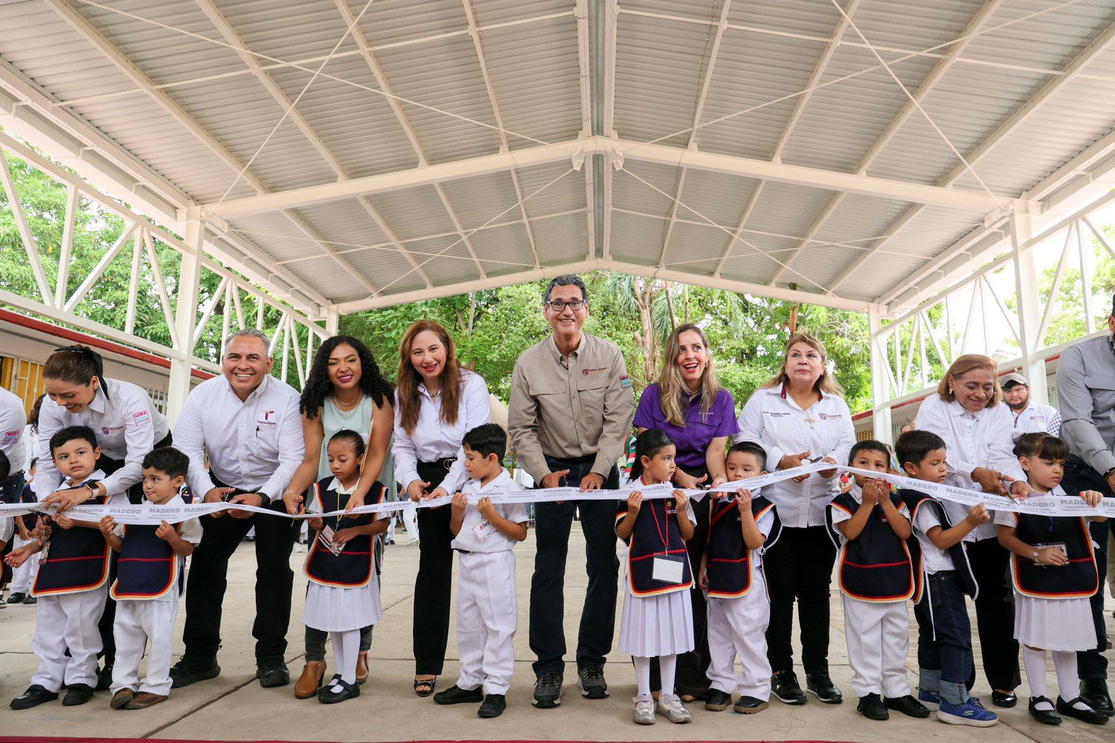 En el jardín de niños “Vicente Guerrero”, el alcalde maderense entregó una techumbre que abarca un área de 219.60 metros cuadrados con una inversión de 1.1 millones de pesos del Fondo de Aportaciones para la Infraestructura Social Municipal y de las Demarcaciones Territoriales del Distrito Federal (FAISMUN-DF).