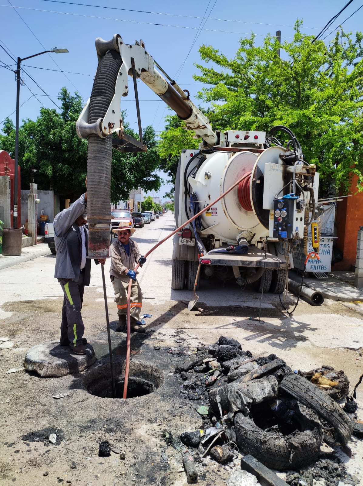 ALTAMIRA, TAM.- Diariamente la Comisión Municipal de Agua Potable y Alcantarillado de Altamira encuentra residuos al interior de alcantarillas y drenes pluviales que obstruyen y dañan la infraestructura hidráulica, en este sentido personal del organismo operador del agua logró extraer neumáticos, entre otros desechos de un pozo de visita ubicado en la colonia Haciendas II.