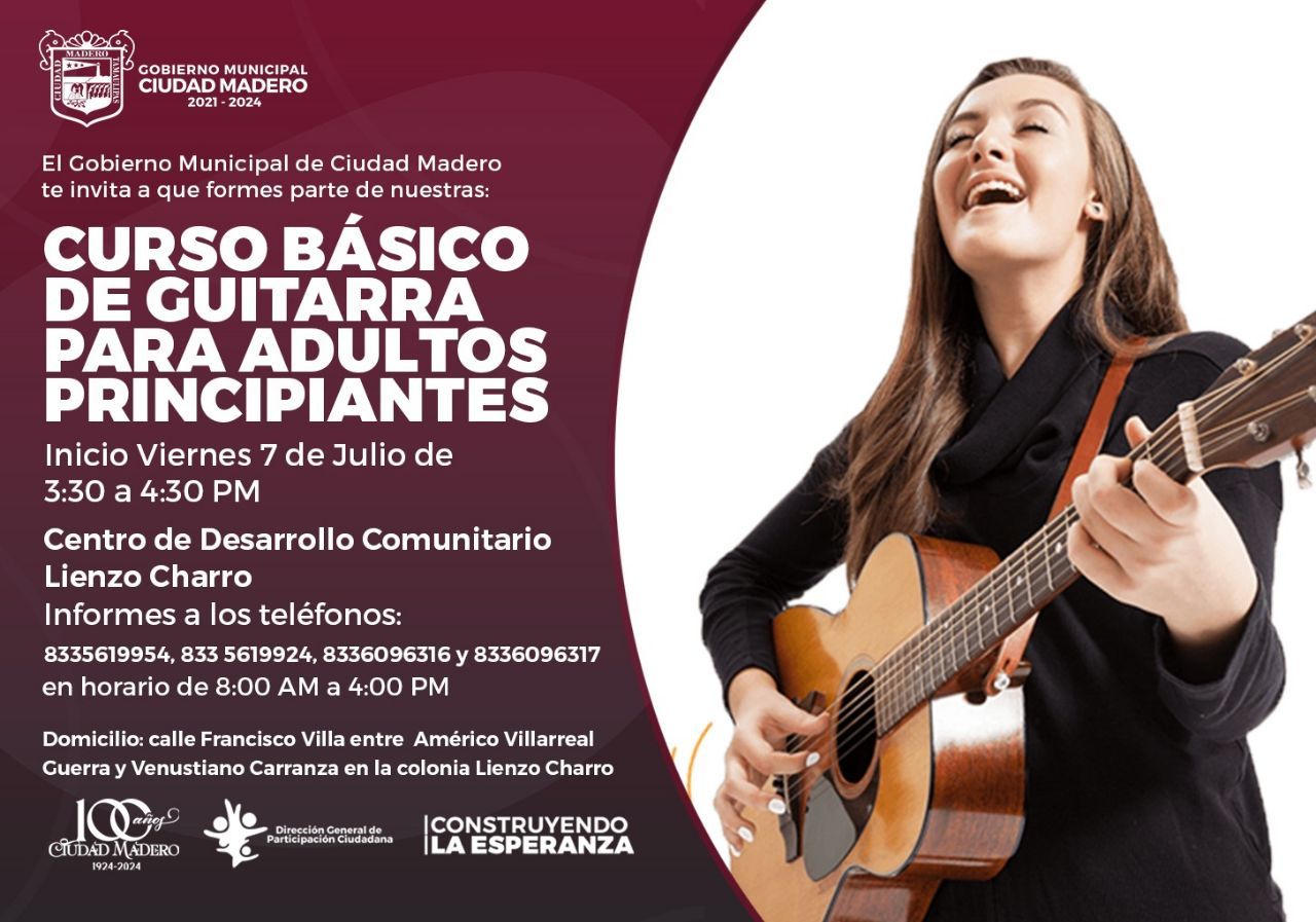 CD. MADERO, TAM.- Se encuentran abiertas las inscripciones para el curso básico de guitarra dirigidas a adultos, mismo que dará inicio este viernes 7 de julio en el Centro de Desarrollo Comunitario de la colonia Lienzo Charro.