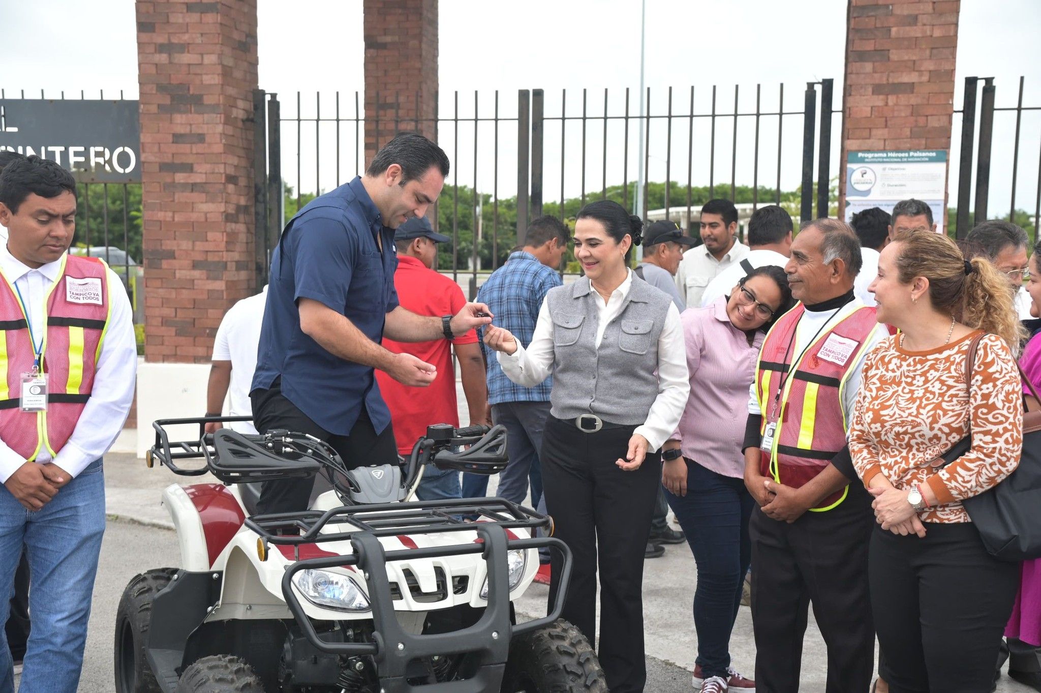 TAMPICO TAMAULIPAS.- Con la finalidad de ampliar y fortalecer la seguridad de visitantes y usuarios del recinto ferial y de toda la infraestructura turística instalada en el entorno de la Laguna del Carpintero, la Presidenta municipal, Mónica Zacil Villarreal Anaya entregó una cuatrimoto todo terreno y una motoneta al personal de vigilancia, para el reforzamiento de los recorridos de seguridad y atención a visitantes.