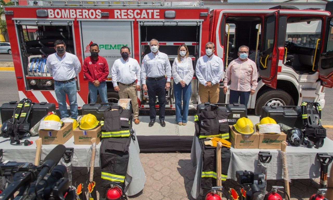 “Quiero agradecer a Petróleos Mexicanos y al Presidente de la República, Andrés Manuel López Obrador, por dotarnos de este camión que cuenta con todo lo necesario para atender contingencias. Es de gran importancia contar con una unidad como esta, es de lo más avanzado que hay para actuar en incendios y rescates”, aseguró Oseguera Kernion, acompañado por su esposa, la Sra. Ana Cristina Organista de Oseguera, presidenta del DIF Municipal.