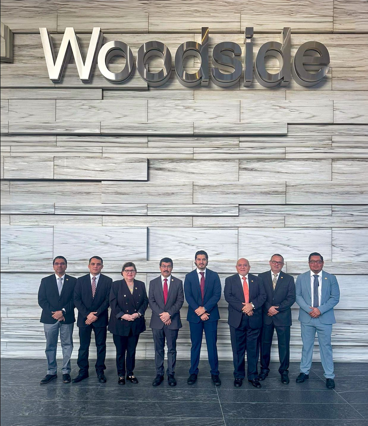 Los directivos de Woodside Energy Daniel Kalms, vicepresidente ejecutivo y jefe de la Oficina de Operaciones Internacionales, y Stephen Drouaud, vicepresidente del proyecto TRION, dieron la bienvenida a la comitiva tamaulipeca encabezada por el doctor Américo Villarreal.