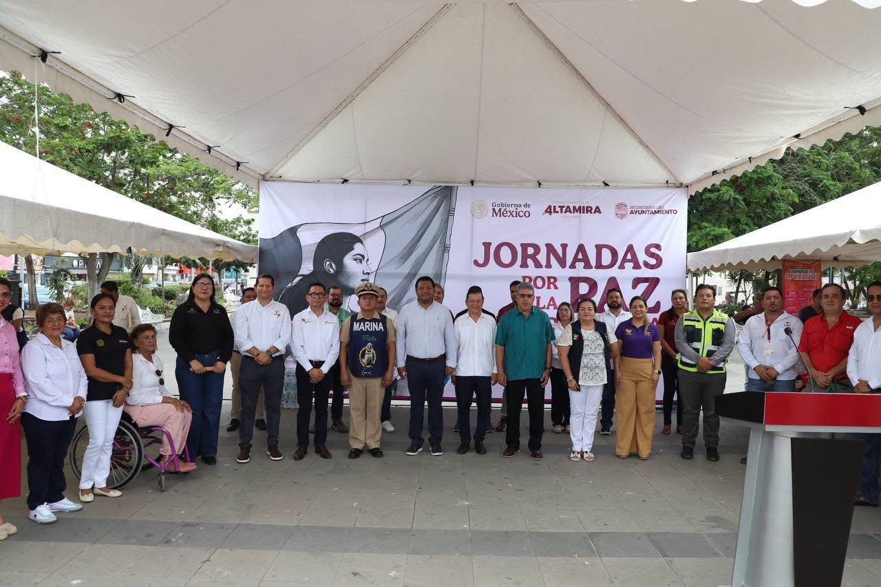 ALTAMIRA TAMAULIPAS.- Con el objetivo de promover el bienestar integral de la ciudadanía, el Gobierno Municipal de Altamira, encabezado por el alcalde Dr. Armando Martínez Manríquez, llevó a cabo la Jornada por la Paz y la Salud en la Plaza Constitución del centro de la ciudad.