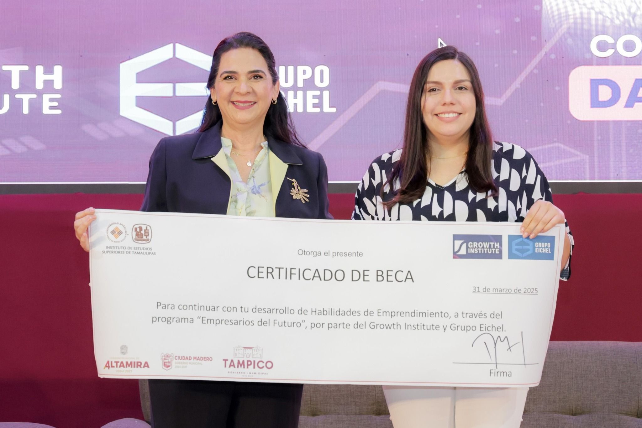 TAMPICO TAMAULIPAS.- En un esfuerzo por fortalecer el ecosistema emprendedor de la región, la presidenta municipal Mónica Villarreal Anaya encabezó la presentación del proyecto «Escala tu Empresa», iniciativa que incluyó la entrega de becas de capacitación para micro, pequeños y medianos empresarios, gracias al apoyo del Instituto Growth y Grupo Eichel.