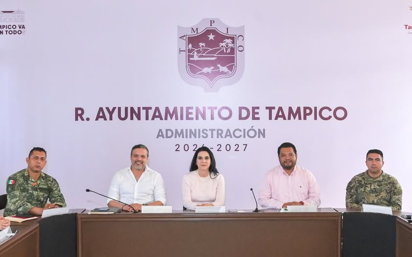 TAMPICO TAMAULIPAS.- Luego de encabezar la reunión semanal de la Mesa de Seguridad y Construcción de Paz efectuada en la Sala de Cabildo, la Presidenta municipal Mónica Villarreal Anaya destacó que se continúan fortaleciendo las acciones institucionales para garantizar entornos seguros a la población; y particularmente a las mujeres, los menores y las familias.