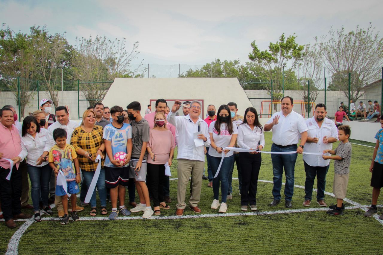 ALTAMIRA, TAM.- Continuando con su compromiso de recuperar los espacios públicos deportivos para promover a través de ellos la reconstrucción del tejido social, el presidente municipal de Altamira Mtro. Armando Martínez Manríquez, entregó a la ciudadanía la remodelación de un parque más.