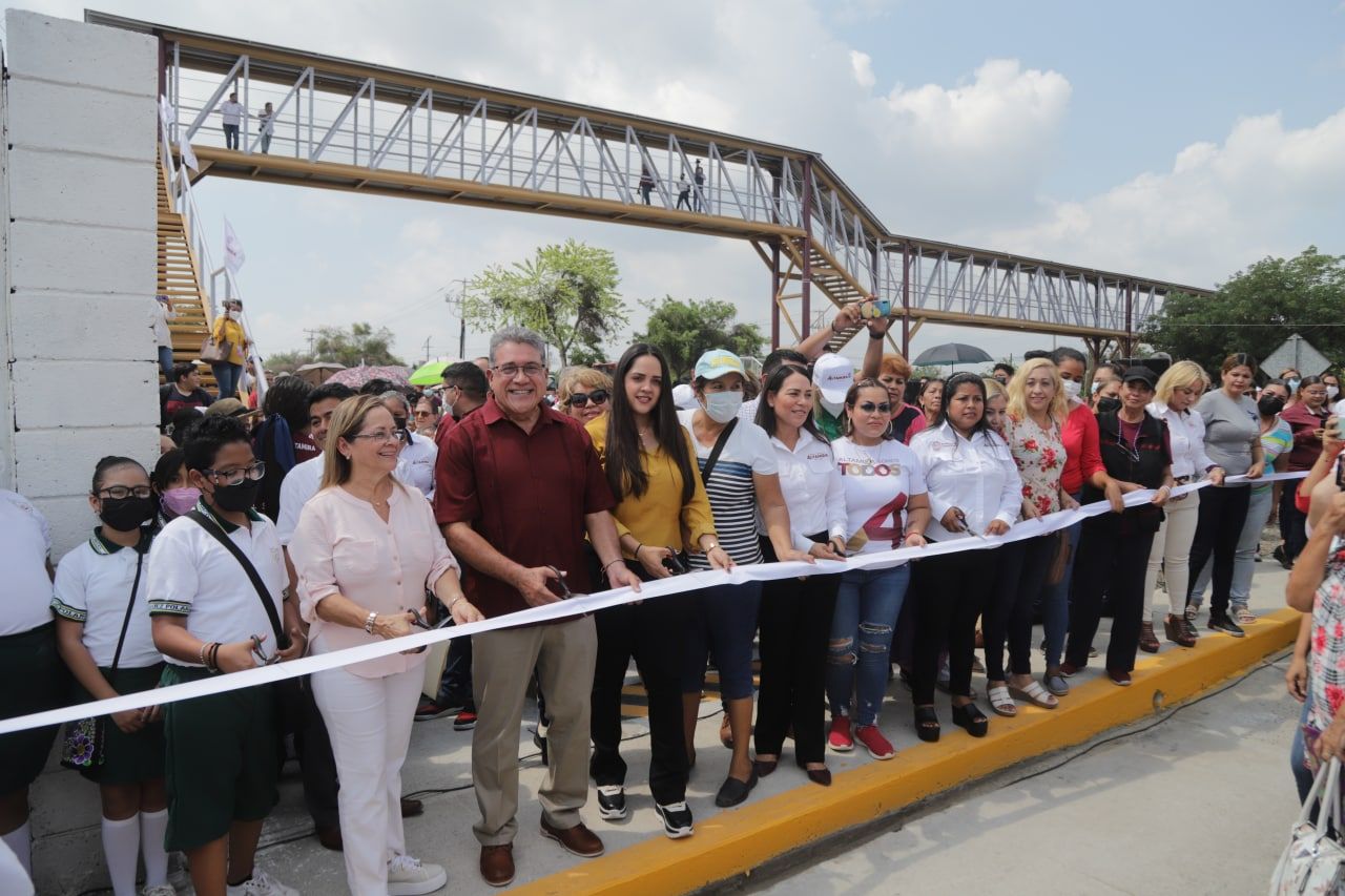 ALTAMIRA, TAM.- Brindando mayor seguridad a los transeúntes y usuarios del transporte público, el presidente municipal de Altamira, maestro Armando Martínez Manríquez, inauguró el puente peatonal “La Retama”, que será de gran utilidad para las personas que cruzan diariamente la avenida de la Industria en el sector conocido como La Morita.