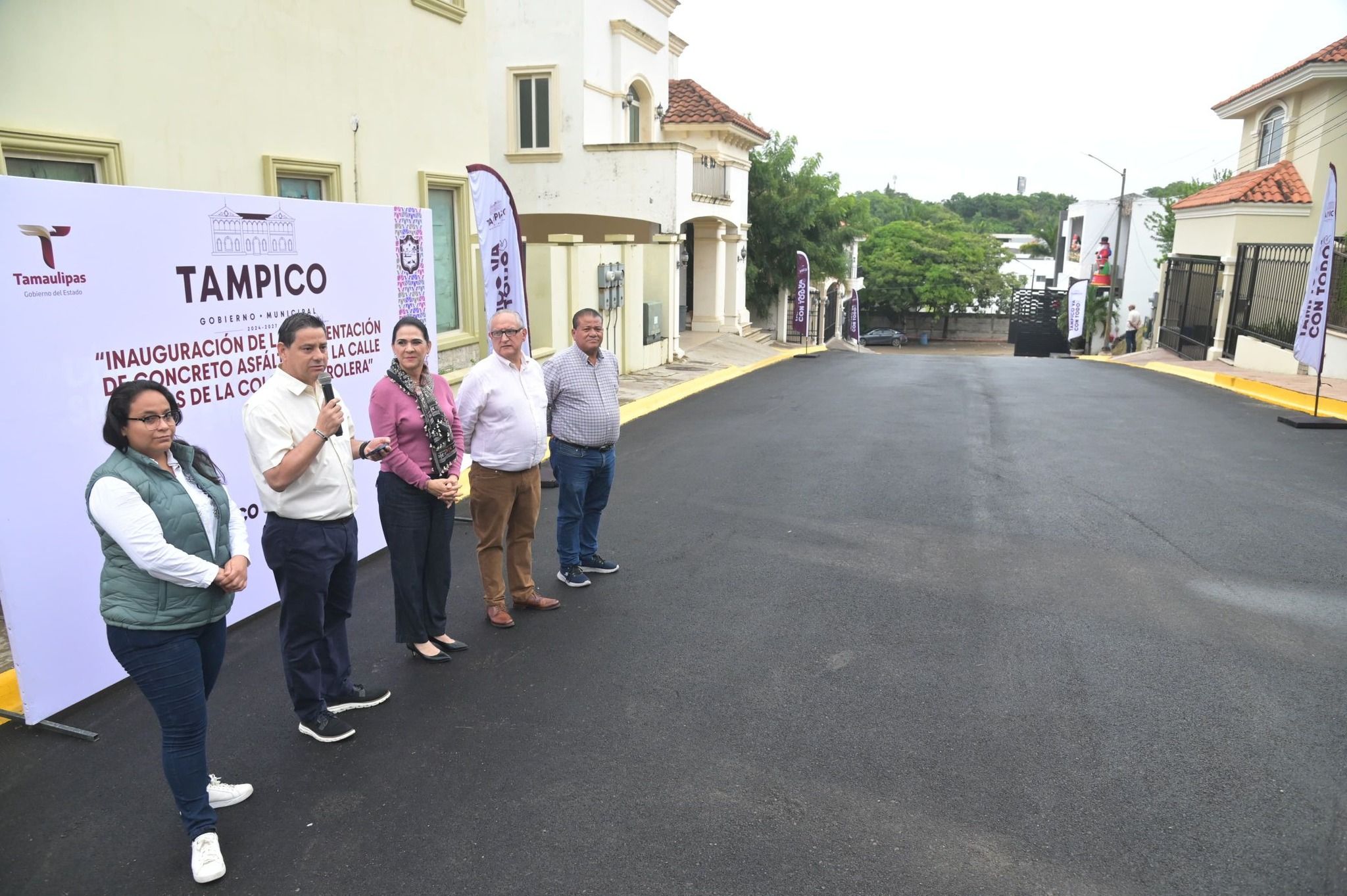 TAMPICO TAMAULIPAS.- Cumpliendo su compromiso de atender el rezago existente en materia de infraestructura vial, la Presidenta municipal Mónica Villarreal Anaya inauguró la pavimentación a base de concreto asfáltico de la calle Tamos, entre Zacamixtle y Cacalilao de la colonia Petrolera, brindando mayor movilidad y seguridad a los vecinos y residentes de este importante sector.