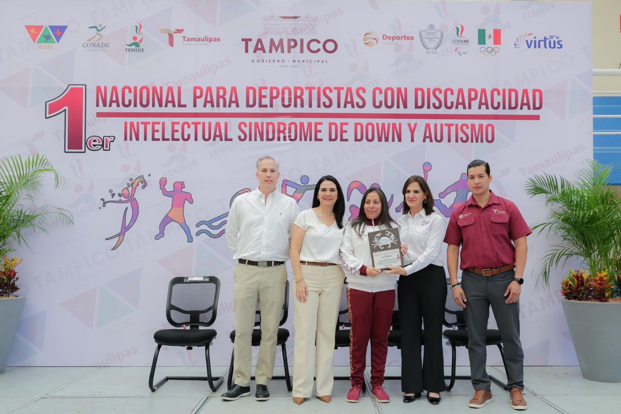 En el acto inaugural, la alcaldesa porteña estuvo acompañada de la Presidenta del Sistema DIF Tampico, Luz Adriana Villarreal Anaya; el Presidente de la Federación Mexicana de deportistas especiales, Miguel Ángel García Meza; el Director general del Instituto del Deporte de Tamaulipas, Manuel Alejandro Lozano; y el titular de deportes en el municipio, Fernando Tamayo Medina, además de síndicos, regidores y funcionarios municipales.