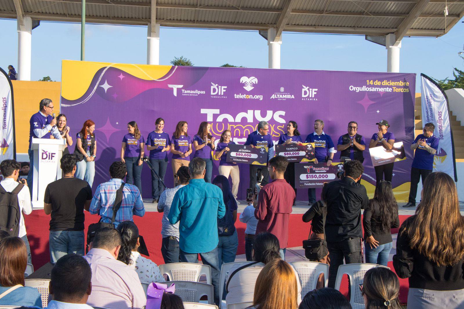 Con este mensaje del presidente municipal Erasmo González Robledo, junto a su esposa Dunia Marón Acuña, se unió al Teletón nacional y realizó una donación de 80 mil pesos, donde asistió en representación del Gobernador del Estado Dr. Américo Villarreal Anaya, el gerente de COMAPA SUR Mtro. Francisco José González Casanova que hizo una aportación del Gobierno del Estado por 150 mil pesos; además se llevó a cabo de manera simultánea con aportaciones similares de los Ayuntamientos de Tampico, representados por la alcaldesa Mónica Villarreal Anaya, y de Altamira, a cargo de Armando Martínez Manríquez.