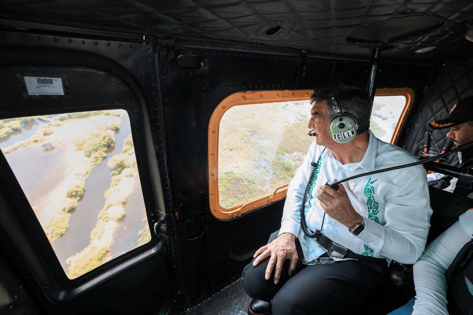 -Gobernador Américo Villarreal y coordinadora nacional de PC, Laura Velázquez, realizan sobrevuelo en zonas vulnerables del sur del estado