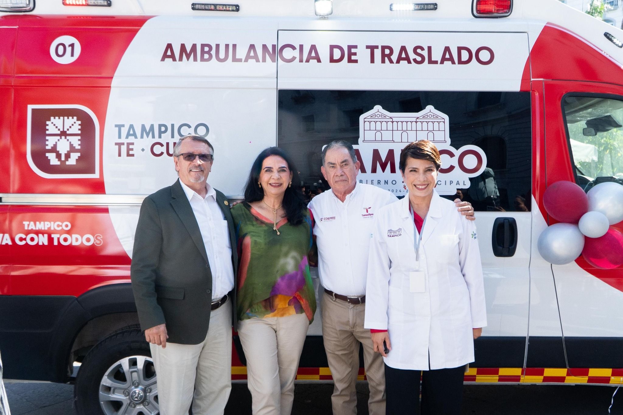 TAMPICO TAMAULIPAS. – A fin de fortalecer los programas de salud y asistencia médica en beneficio de los tampiqueños, la Presidenta municipal, Mónica Villarreal Anaya entregó este día, una moderna ambulancia y una nueva unidad motriz para incorporarlas al traslado de enfermos y a la atención domiciliaria del programa de salud «Casa por Casa».