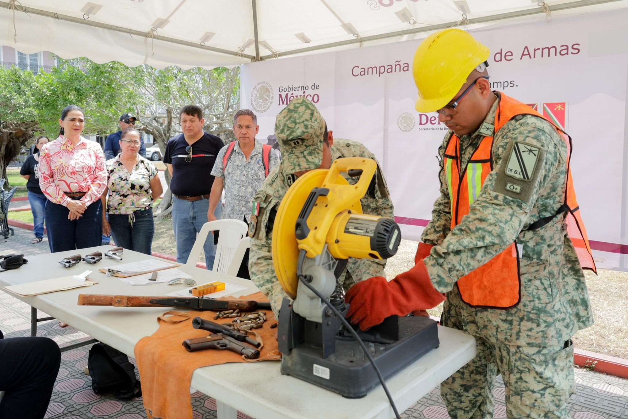 TAMPICO TAMAULIPAS.- La Secretaría de la Defensa Nacional (Sedena), en colaboración con el Gobierno Municipal de Tampico, realizó una Campaña de Canje de Armas con el objetivo de fortalecer la seguridad y reducir riesgos en los hogares.