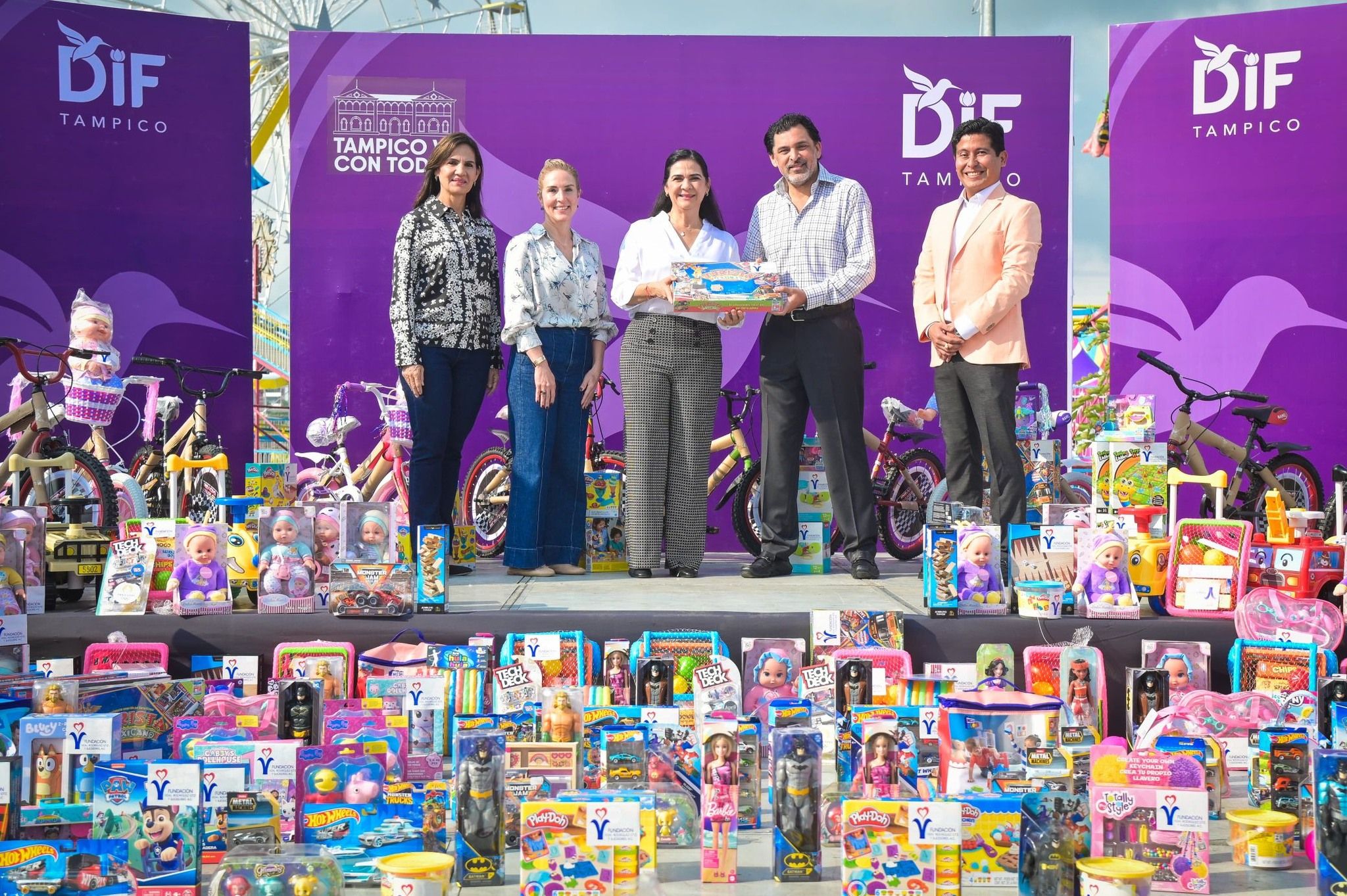 La alcaldesa porteña acompañada de la titular del Sistema DIF, Luz Adriana Villarreal Anaya informó lo anterior luego de recibir un importante donativo de juguetes y bicicletas por parte de la Fundación Vidal Rodríguez Gutiérrez y Sucesores en un evento efectuado en las instalaciones del Recinto Ferial.
