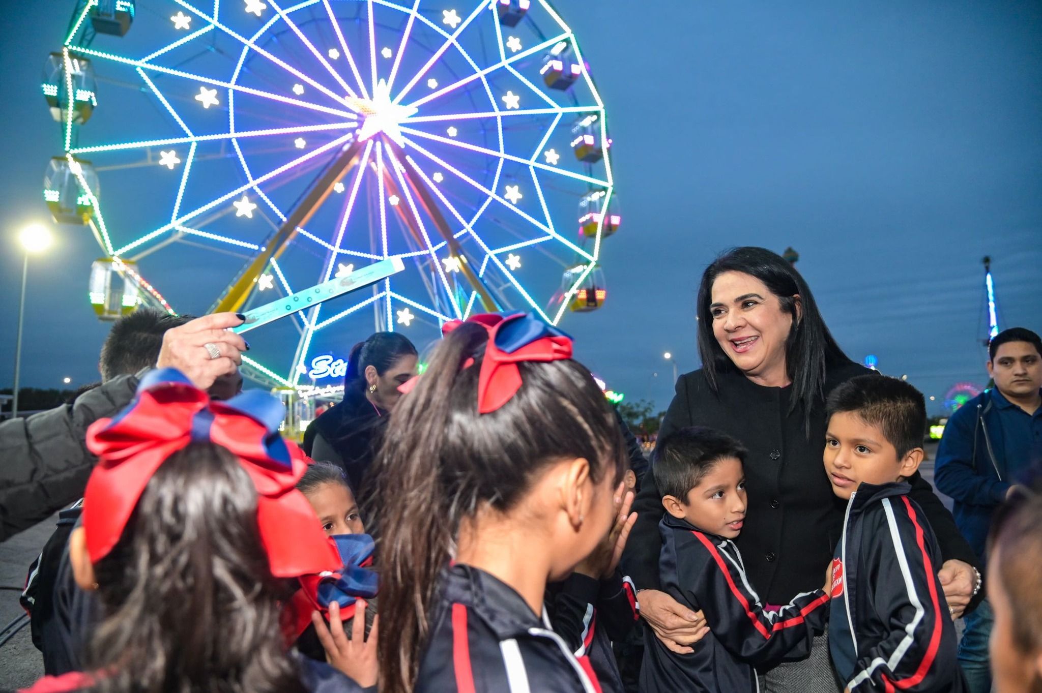 Mónica Villarreal encabezó la entrega de juguetes, regalos, dulces y refrigerios a los menores, quienes además tuvieron la oportunidad de disfrutar libremente de los juegos mecánicos y demás atracciones de la feria y de las villas navideñas.
