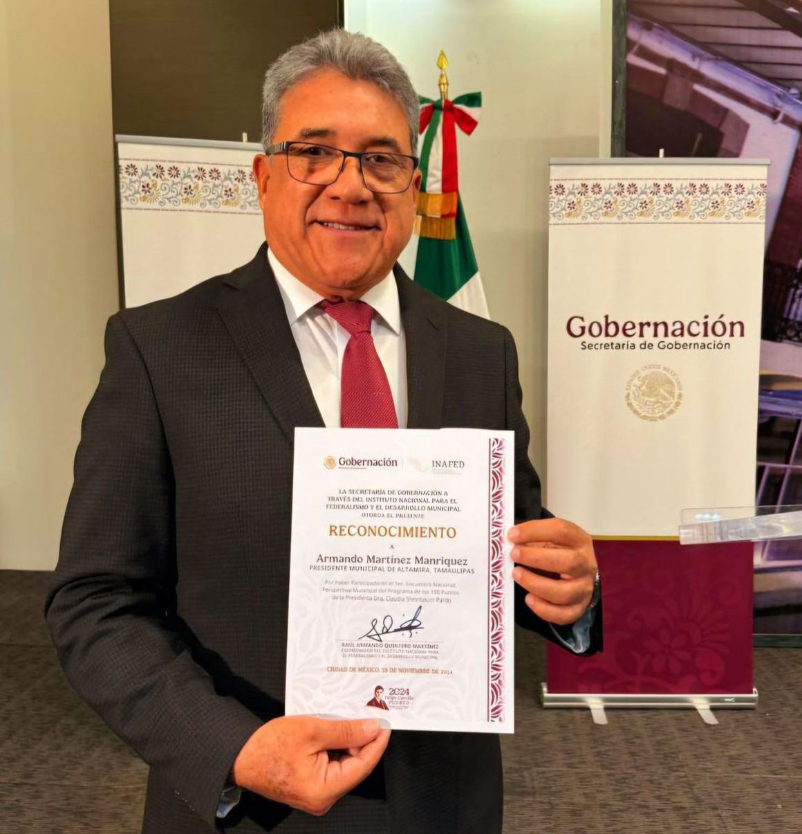 «Es un honor representar a Altamira y recibir este reconocimiento. Este encuentro reafirma la importancia de sumar esfuerzos para lograr un progreso equitativo en todos los rincones de nuestro país», expresó Martínez Manríquez.