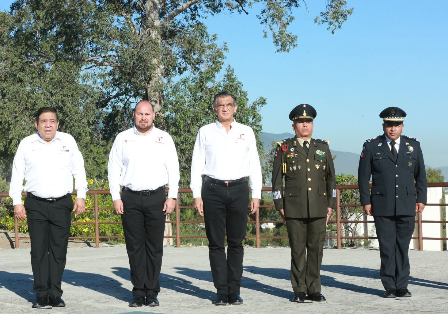 Al presidir la ceremonia cívica de honores y luego de izar la bandera monumental en el Parque La Loma, de esta capital, junto a los mandos de la Secretaría de la Defensa Nacional y de la Guardia Nacional, el gobernador hizo un reconocimiento al compromiso y la contribución que realizan las fuerzas armadas para garantizar la seguridad y la paz de las familias en Tamaulipas.