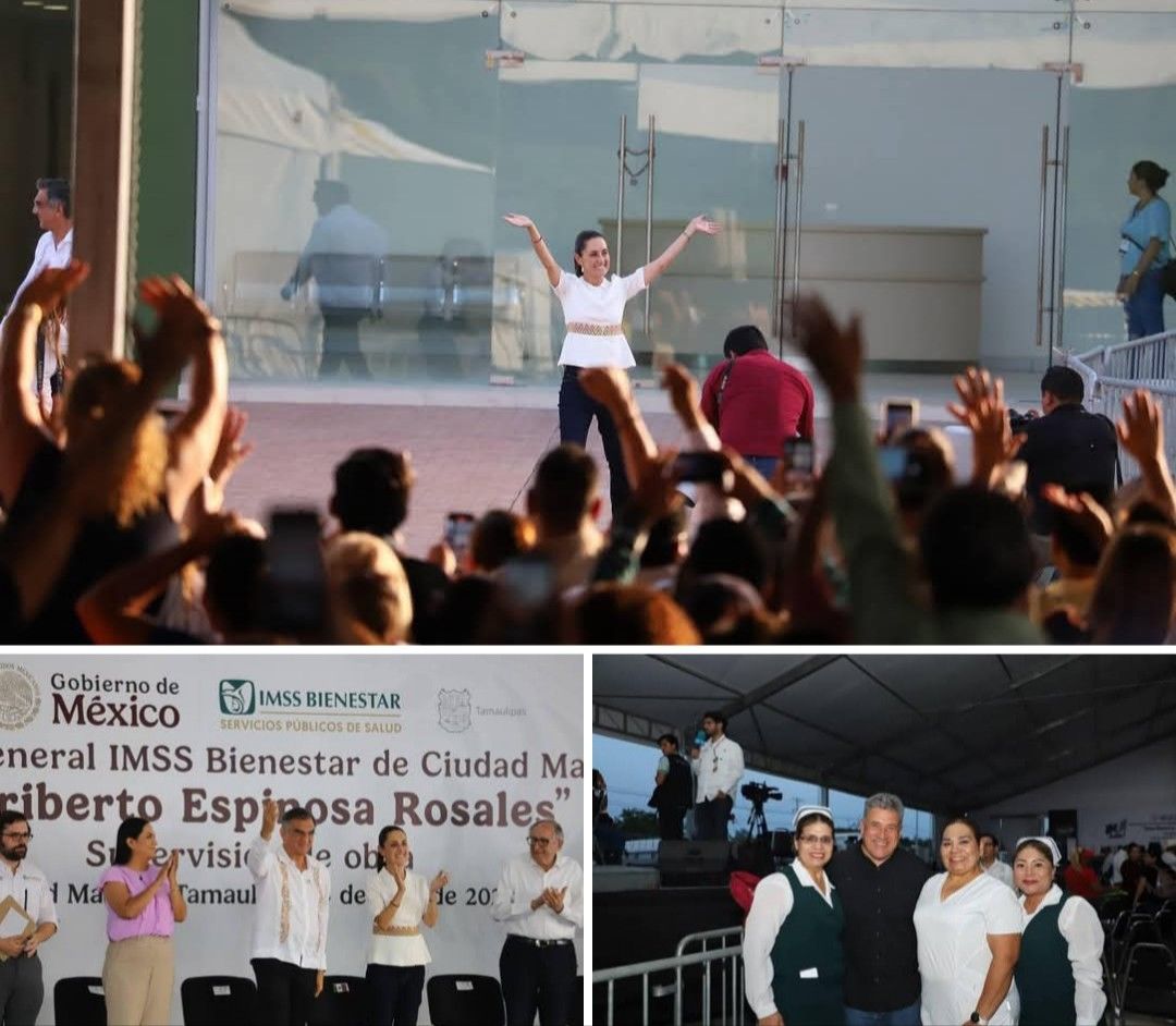 Como parte de esta visita oficial, las autoridades supervisaron los avances en la construcción del Hospital General IMSS-Bienestar «Heriberto Espinosa Rosales», ubicado en Ciudad Madero. Esta obra de salud, equipada con tecnología de última generación, brindará atención médica completamente gratuita a la población de la región sur del estado.