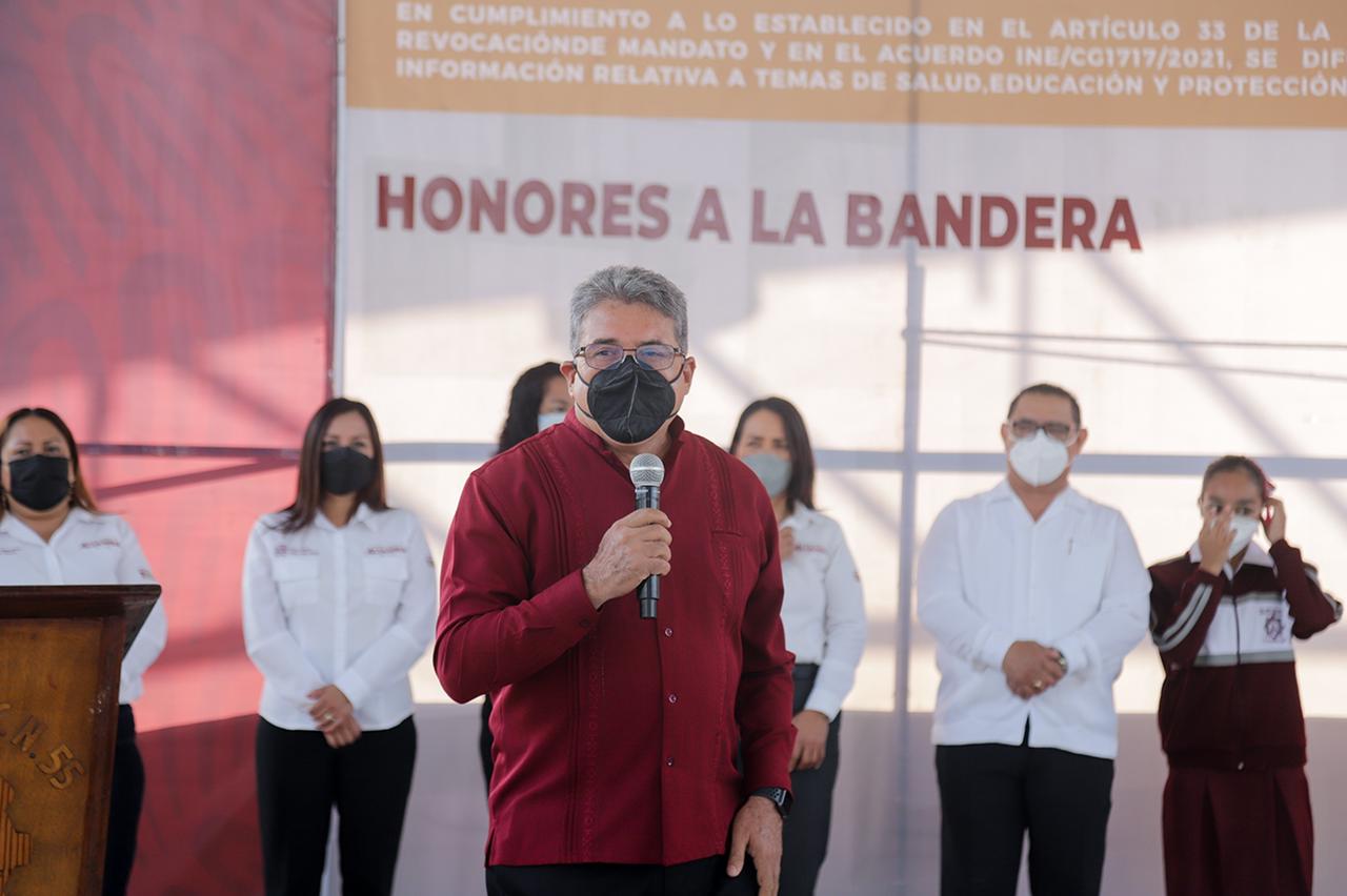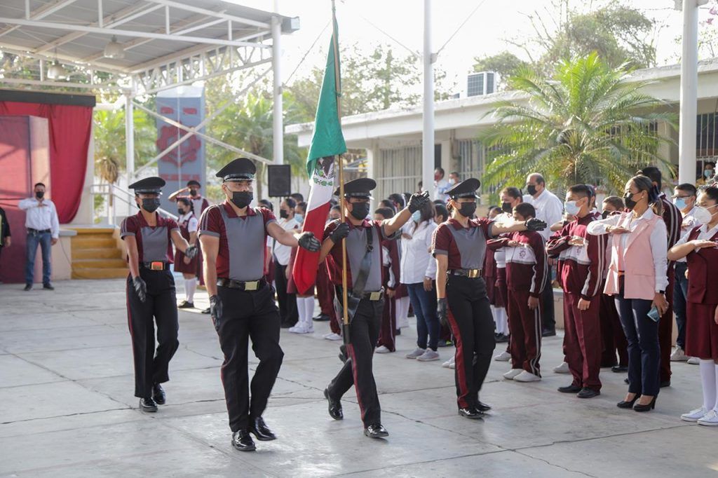 ALTAMIRA, TAM.- Como cada inicio de semana, fue llevada a cabo la ceremonia de honores al lábaro patrio en la Escuela Secundaria Técnica No. 55 “Expropiación Petrolera” , evento en el que el presidente municipal de Altamira, Mtro. Armando Martínez Manríquez estrecha lazos con el sector educativo, a la par que escucha y atiende sus peticiones.