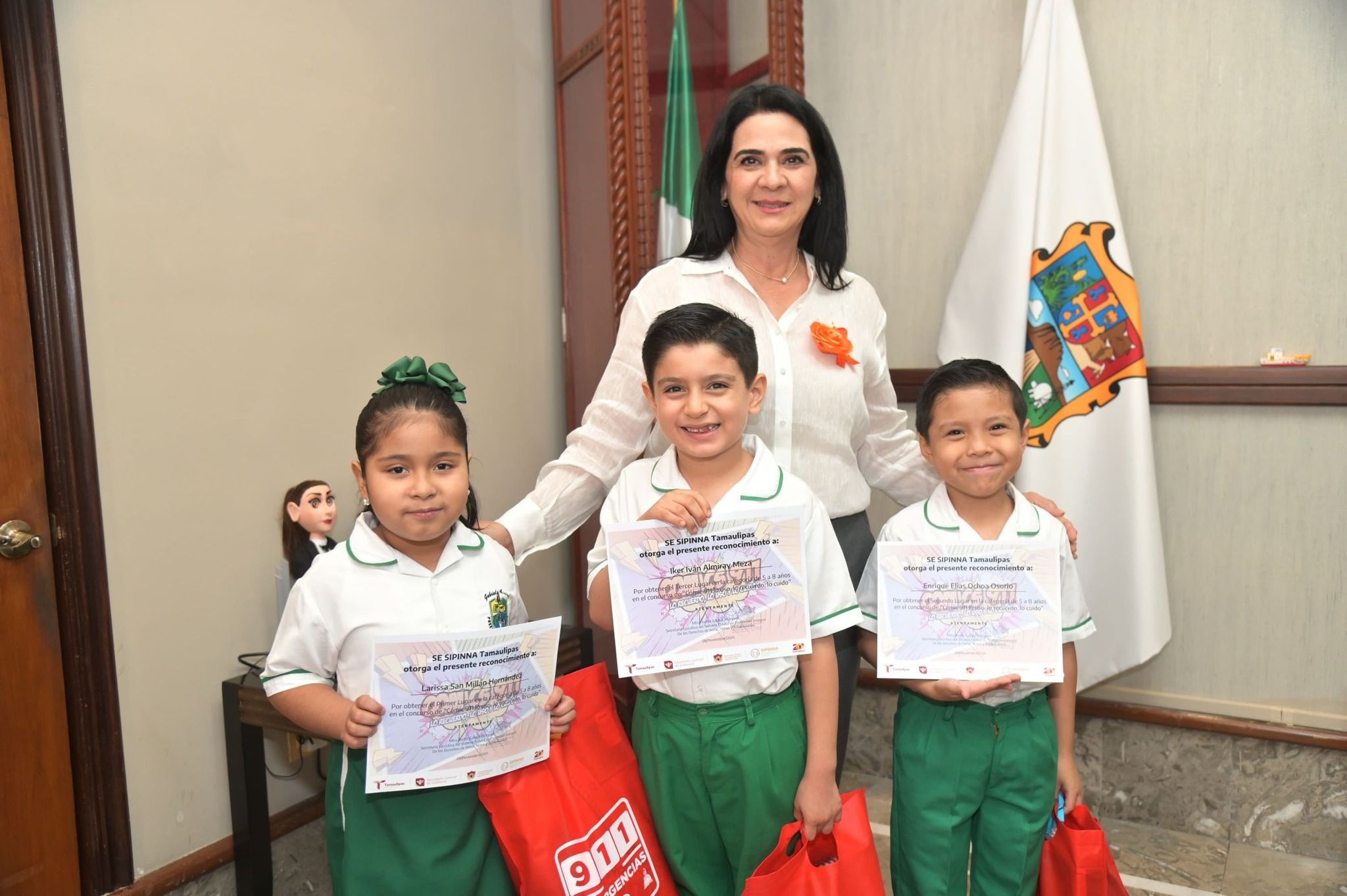 TAMPICO TAMAULIPAS.- En el marco de las acciones que desarrolla el Sistema Estatal de Protección Integral de las Niñas, Niños y Adolescentes -SIPINNA-, la Presidenta Municipal Mónica Zacil Villarreal Anaya, entregó reconocimientos a los niños ganadores de la Segunda Edición del Concurso «Comic 911: Lo Uso, Lo Recuerdo y Lo Cuido» evento organizado en coordinación con el Secretariado Ejecutivo de Seguridad Pública.
